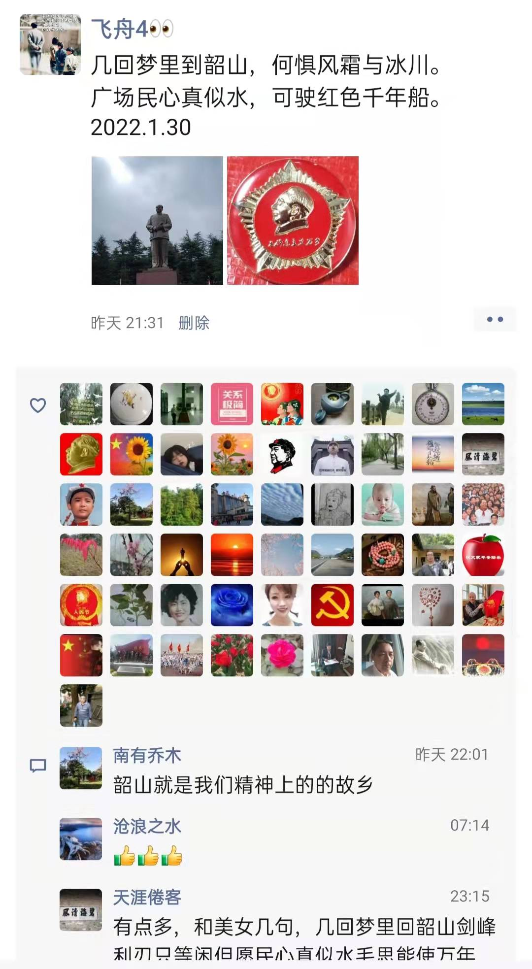 韶山是我灵俯深处唯一的净土与精神家园。我没有回家与家人团圆,而选择了在韶山过春节。这是我第一次在韶山过节,心情是激动的、愉快的,为毛爷爷守岁是幸福的、光荣的。