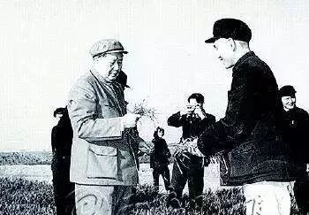 照片上,来山东视察的毛主席一脚踏在田垅上,一脚踏在麦田里,仔细询问麦苗生长情况。手拿一棵麦苗,向毛主席汇报小麦拔节生长情况的,就是时年27岁的历城县委常委、东郊公社党委第一书记郑松。